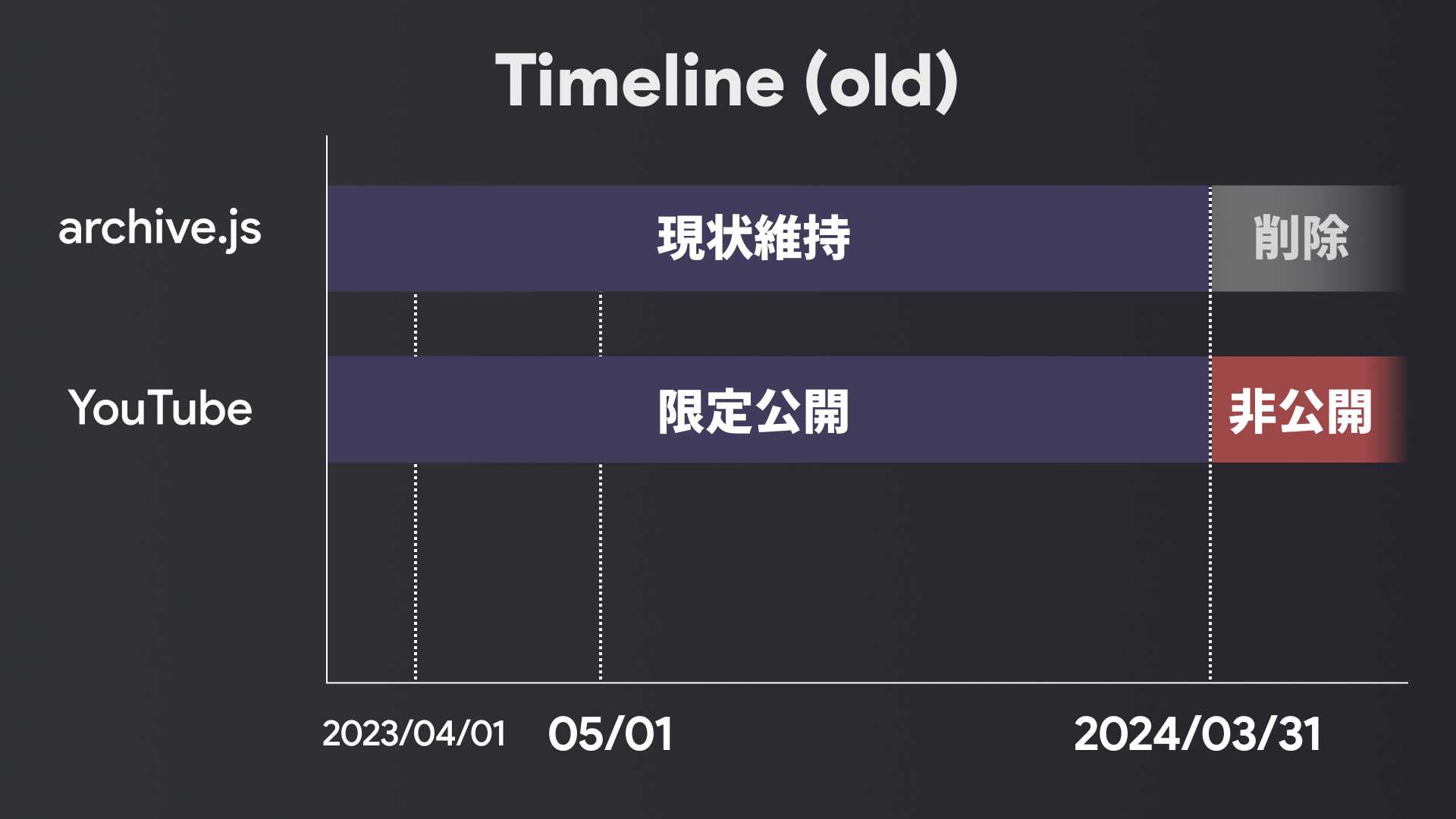 - 1年後にarchive.jsをどうするかは未定。終了する可能性は低い。
