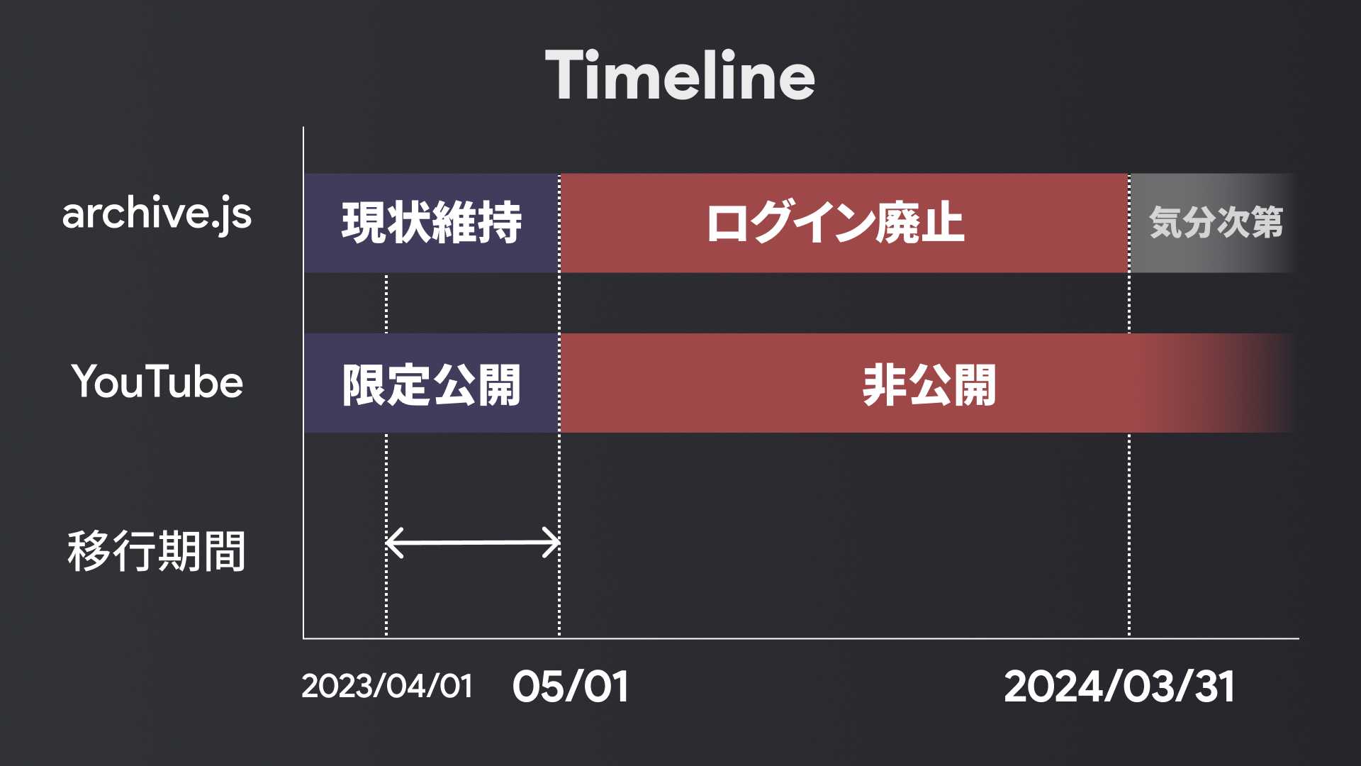 という素晴らしいメリットがあるからだ。よって、2023年5月1日をもってarchive.jsのログイン機能は廃止、YouTubeの動画は非公開となる。